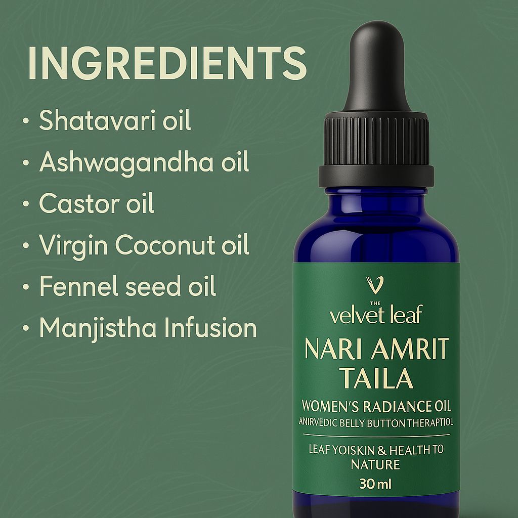 ✨ Reclaim your natural glow with Nari Amrit Taila, a specially crafted Ayurvedic oil designed for women’s overall wellness and radiance. This unique belly button therapy oil helps balance the body’s energies, deeply nourishes from within, and enhances skin vitality.