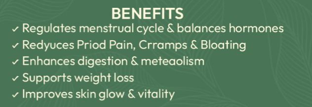 This is such a really very helpful product for women’s. Mene 2 months use kiya hai product and I show change in my body and periods bhi regular hone lage hai or cramps me bhi 90% relief hai. Such a great product.
